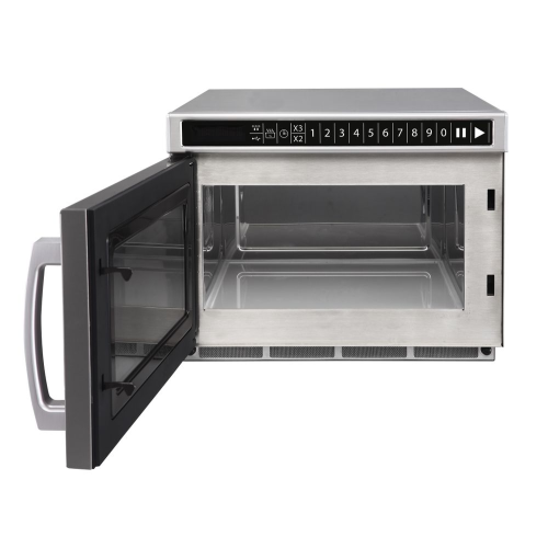 Behuizing en binnenkant van de kamer gemaakt van roestvast staal. Kamer voorzien van een keramische vloer. Duidelijk afleesbaar touch-bedieningspaneel met druktoetsen en digitaal display waarop tijd en vermogen worden weergegeven. Draaiende magnetronantennes onder en boven voor een gelijkmatige energieverdeling, geen draaiende onderdelen in de kamer. Ingebouwde luchtfilter beschermt tegen stof en vuil. Een speciaal systeem dat je eraan herinnert om het filter schoon te maken. Deur met venster om de voortgang in het verlichte interieur van de magnetron te volgen. Strakke sluiting; eenvoudig te openen - geen vergrendelingsmechanisme. Kamer interieur: – afmetingen 330x310x(H)175, inhoud 18 l. – makkelijk schoon te maken. – het breken van borden wordt voorkomen dankzij de afgeronde randen. – keramische vloer. Multifunctioneel gebruik: – ontdooien. – 10 standaardprogramma's. – 10 vermogensniveaus. – programma's uploaden via de USB-poort, – mogelijkheid om tot 100 programma's op te slaan, inclusief tot 20 aangepaste, meertraps programma's. – automatische tijdconversie voor dubbele of driedubbele porties. – het einde van de kookcyclus wordt aangegeven door een alarm. Mogelijkheid om het geluid te veranderen of helemaal uit te zetten. Magnetronvermogen: 1800 W. Geschikt voor ronde (tot ø300 mm) en rechthoekige platen. Maximale enkele gebruiksduur: 60 minuten. Voorzien van een kabel met een geaarde stekker. Wordt geleverd met een USB-kaart, software inbegrepen. Gewicht: 31,8 kg.