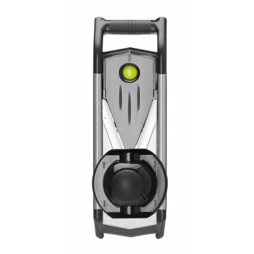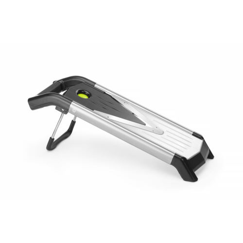 Gemaakt van roestvast staal. De snijdikte kan worden aangepast door het inzetstuk te verwisselen: 1,5 mm, 2,5 mm of 3,5 mm. Voorzien van 2 julienne-inzetstukken: 4,5 mm en 9 mm. De voedselhouder is vervaardigd uit PP en 18/8 roestvast staal. De inzetstukken kunnen worden ontgrendeld met één centrale vergrendelings-/ontgrendelknop. De inklapbare voeten zijn voorzien van antislip TPR en zorgen voor stabiliteit tijdens gebruik. Geschikt voor vrijstaand gebruik, plaatsing op een kom of gebruik in de hand. Wordt geleverd met een opbergbox voor de inzetstukken, een voedselhouder ter bescherming van de vingers tijdens het snijden en een mesbeschermer voor veilige opslag.