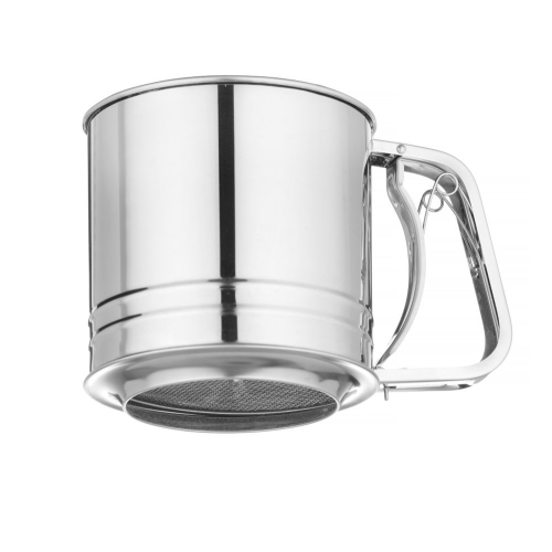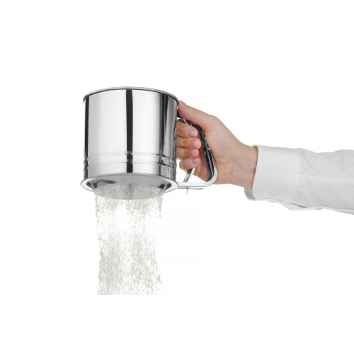 Behuizing en gaas gemaakt van roestvast staal. 2 lagen zeer fijn gaas. Met een knijphandvat (veermechanisme). Capaciteit: ~550g. Vaatwasmachinebestendig.