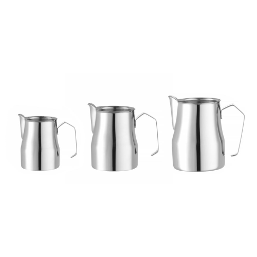Gemaakt van extra dik roestvast staal, helpt de inhoud warm te houden. V-vormige tuit geeft extra controle tijdens het schenken.
