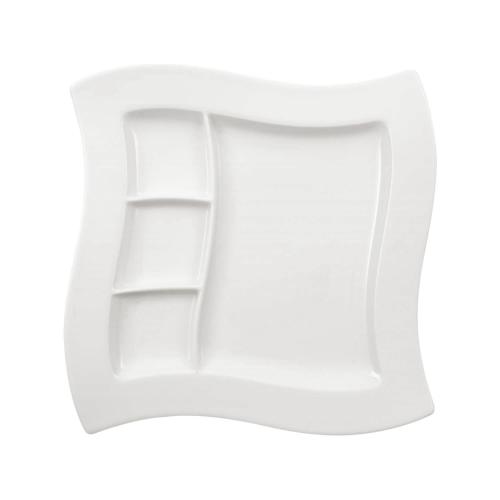 Het NewWave Grill bord van 27x27 cm is ontworpen voor het serveren van gegrild vlees, vis of andere gerechten. Het innovatieve design en de golvende rand geven een moderne uitstraling aan je tafelsetting, terwijl het hoogwaardige porselein zorgt voor een lange levensduur en duurzaamheid voor dagelijks gebruik.