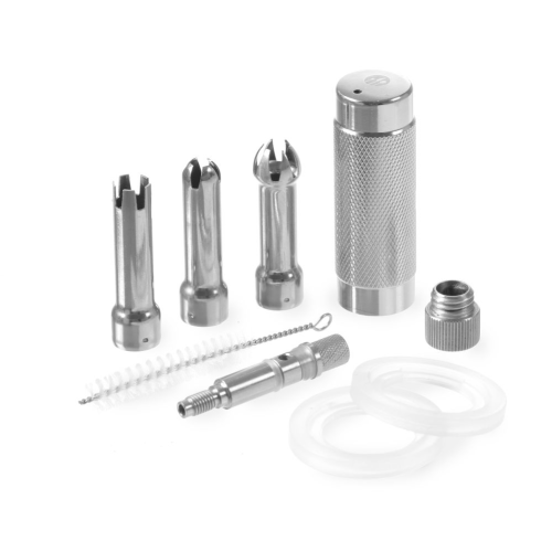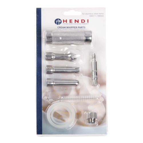 Set voor HENDI slagroomapparaten. Bevat 3 spuitmondjes, patroonhouder, afdichtring, ventiel en schoonmaakborsteltje.