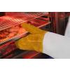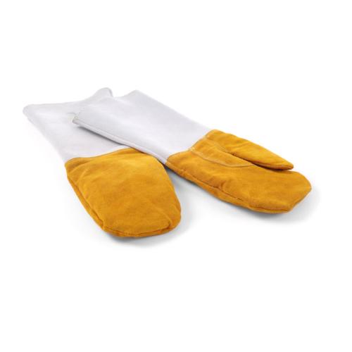 Hittebestendig tot 250°C. Gemaakt van runderleer. Extra lang om de onderarm te beschermen.