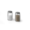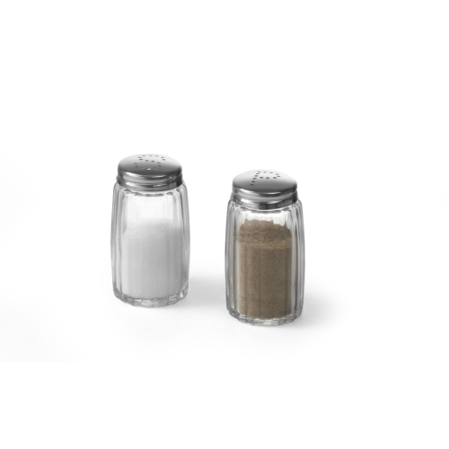 Glazen strooier. Dop van roestvast staal met S en P strooiopening.