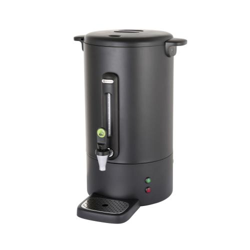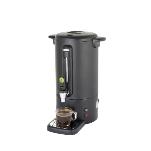 Ontworpen voor uw gasten door de gerenommeerde Nederlandse ontwerper Robert Bronwasser. Het unieke ontwerp met oog voor detail maakt dit apparaat een blikvanger op elk buffet. Behuizing van enkelwandig roestvast staal, met stijlvolle handgrepen en deksel van polypropyleen. Unieke non-drop kraan met geïntegreerd peilglas met maatverdeling. Magnetisch gekoppelde lekbak, kan verwijderd worden zonder tillen of morsen. Filterpan met ingebouwd filter voor grof gemalen koffie, hierdoor geen filterpapier nodig. De percolator houdt koffie op serveertemperatuur na het brouwen. Indicatielampje toont de voortgang van het brouwen en geeft aan wanneer ontkalking nodig is.