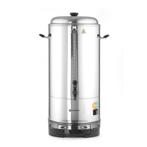 Geïsoleerde dubbelwandige structuur van hoog-gepolijst roestvast staal vermindert warmteverlies door geleiding, convectie en straling. Energieverbruik tot 20% lager dan vergelijkbare enkelwandige percolators. Behuizing en ketel van roestvast staal. Gelaste roestvast stalen handgrepen met siliconen grip. Non-dripkraan. Glazen peilglas. Ontkalkingsindicatie. Lekbak met roestvast stalen rooster.