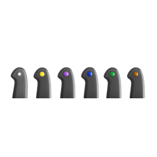 roestvaststalen mes, handvat van polypropyleen. Met HACCP-kleurcoderingssysteem, gekleurde pinnetjes zijn niet te verwijderen na plaatsen.