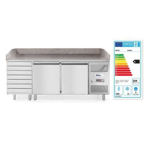 Pizzawerkbank met 2 deuren en 7 lades 280L, Arktic, 250L, 230V/250W, 2020x802x(H)1000mm