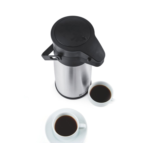 Behuizing en binnenwanden van roestvast staal. Deksel gemaakt van polypropyleen, opent tot 125 graden voor eenvoudig vullen en reinigen. Deksel met een drukpomp voor eenvoudig schenken. Handgreep voor makkelijk dragen. Capaciteit: 2,2 l.