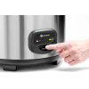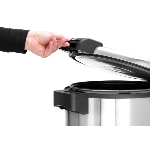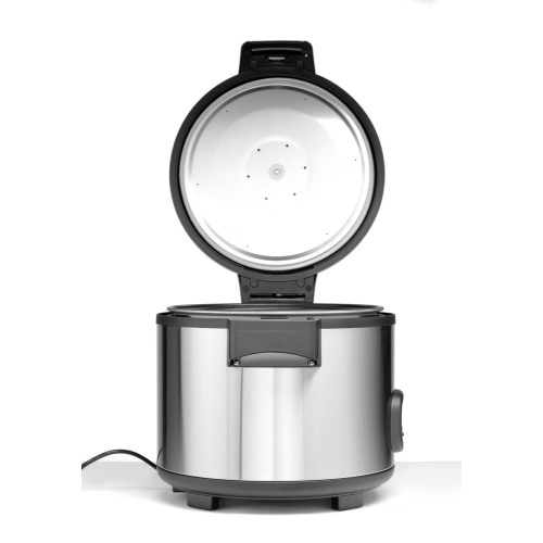 Behuizing gemaakt van roestvast staal. Interne aluminium binnenpan met antiaanbaklaag, uitneembaar, eenvoudig te reinigen. Roestvaststalen scharnierend deksel met afdichting en ontluchtingsklep. Kliksluiting voor eenvoudig en stevig afsluiten van de koker. Een speciale opvangbak voor het opvangen van condenswater dat van het deksel druppelt, beschermt het werkoppervlak tegen vocht. 2 werkmodi – kookstand en warmhoudstand; na het koken schakelt het apparaat automatisch over naar de warmhoudstand. Capaciteit: Geschikt voor 30 kopjes ongekookte rijst (45-60 porties gekookte rijst). Inclusief maatbeker, rijstlepel en siliconen antiaanbakmat.