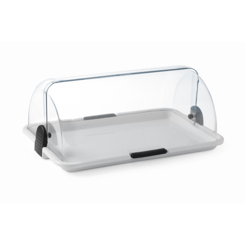Transparante roltop kap gemaakt van polystyreen. Gemakkelijk toegang tot geserveerd eten aan beide zijden van de display. Eenvoudig te reinigen. Vaatwasmachinebestendig.