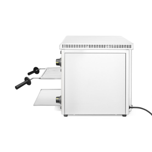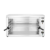 Ideaal voor braadpannen, grillen en het opwarmen van gerechten. Temperatuurregeling: 50°-300°C. Met verwarmingselement aan de bovenzijde. Uitgerust met thermostaat, 30 min. timer en controlelampje. 4 mogelijke roosterhoogtes. Geleverd met: rooster met handgrepen en kruimeltray. Afmetingen binnenzijde: 646x408x(H)337 mm. Gemaakt van roestvast staal.