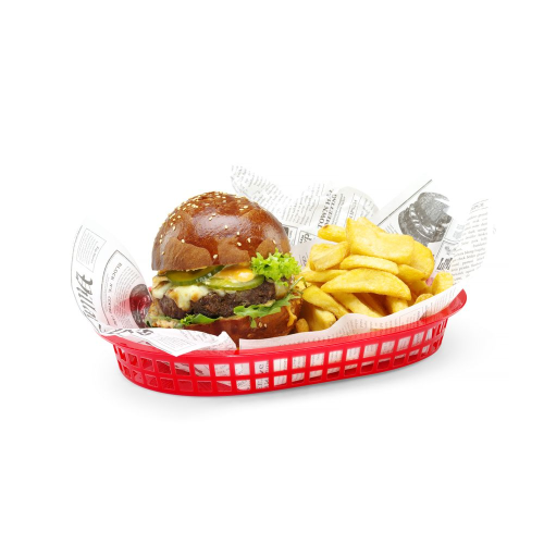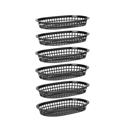 Ideaal voor fastfoodrestaurants, eetcafés en foodtrucks. Set van 6 polypropyleen serveermanden. Lichtgewicht, stapelbaar en eenvoudig te reinigen. Verkrijgbaar in meerdere kleuren.