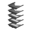 Gemaakt van roestvast staal en ABS. Ontworpen voor het HENDI Mandoline V-type, code: 222614. De set bevat: - standaard mes, - golvend mes, - Rasp (bijv. voor harde kazen, chocolade), - 2 versnippermessen (kleine en grote gaten). Vaatwasmachinebestendig.