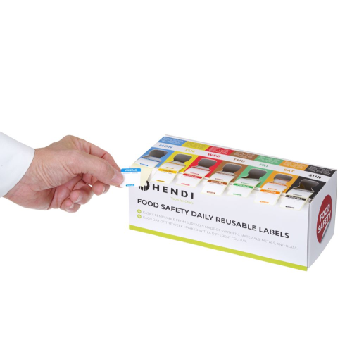 Set voedselveiligheidsstickers, multifunctioneel, eenvoudig verwijderbaar, met een dispenser, HENDI, 240x80x(H)100mm