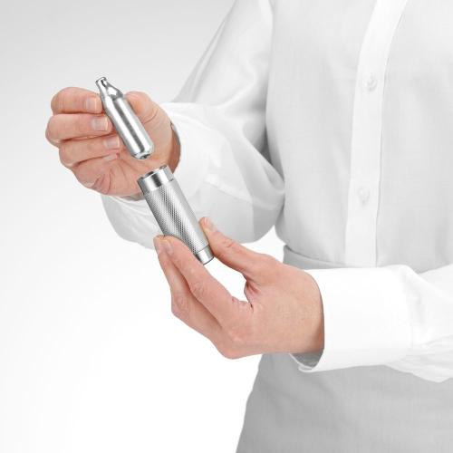 Maakt heerlijke slagroom, mousses, desserts, koude schuimen en sauzen in een handomdraai Ideaal voor garneren van cappuccino, koffie, shakes en ijs. Geschikt voor warme sauzen tot 70°C. Inhoud blijft tot 14 dagen vers in de koelkast. Inclusief 3 roestvaststalen spuitmondjes. Slagroompatronen (N₂O) vereist voor gebruik, niet inbegrepen.