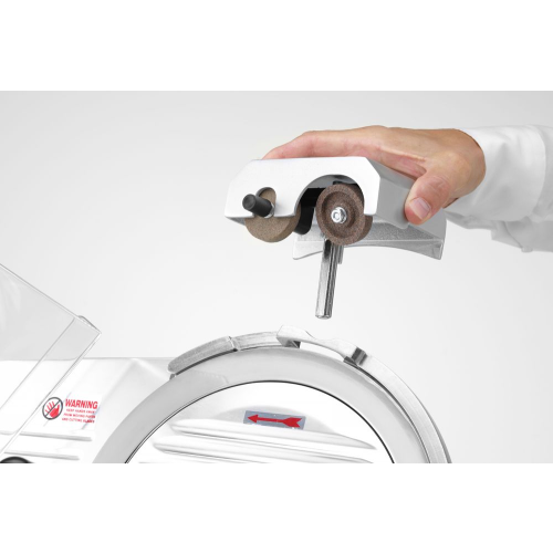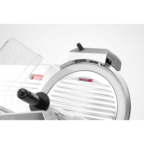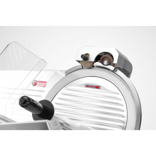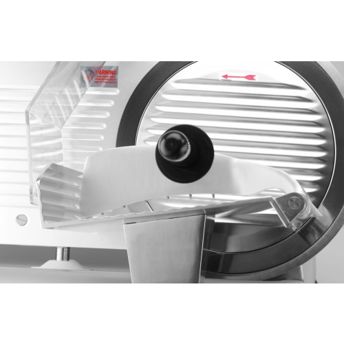 Geanodiseerd aluminium behuizing en ene 0.3 pk luchtgekoelde motor, beschermd met een kunststof afdekplaat. Slede met transparant veiligheidsscherm. Eenvoudig te demonteren voor snelle reiniging. Met ingebouwde slijpinrichting. Schuingeplaatst mes van hoge kwaliteit. Mes diameter: 300 mm. Geschatte maximale doorsnede van te snijden producten: 210 mm. Traploos instelbare snijdikte tot en met 13 mm. Vergrendeling wanneer de beschermplaat van het mes verwijderd wordt. 4 plastic antislip voetjes. Gewicht: 24,5 kg.
