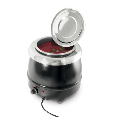 Bain-marie HENDI 8 liter. Zwart gecoat. Met roestvast stalen binnenpan en klapdeksel. Voorzien van energieregeling. Uitermate geschikt voor buffetten. Inclusief magneet-tekstplaatjes.