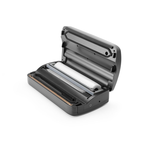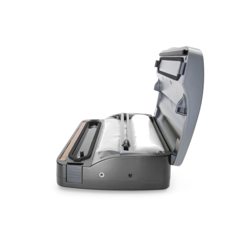 Voor het verpakken van voedingsmiddelen en niet-voedselproducten, met uitzondering van vloeistoffen. Volledig gemaakt van duurzaam ABS-plastic. De dekselafdichting garandeert een stevige afdichting tijdens het gebruik. Gebruiksvriendelijk bedieningspaneel. Twee sealtijden en twee niveaus van luchtaanzuigkracht. Zakhouder in de behuizing. Trillingspomp. Pompcapaciteit: 6,5 l/min. Niet bedoeld voor continu gebruik. Geschikt voor zakken tot 310 mm breed. Te gebruiken met zakken met reliëf.