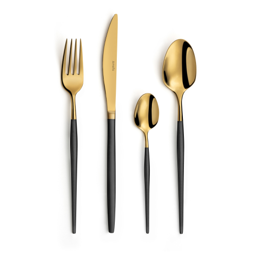 Soprano is een bestek met een strak design dat opvalt door zijn moderne uitstraling goud met zwarte kleur en slanke lijnen. Soprano combineert elegantie en stijl met een uniek design dat erg prettig is om vast te houden en dus lekker om mee te eten.