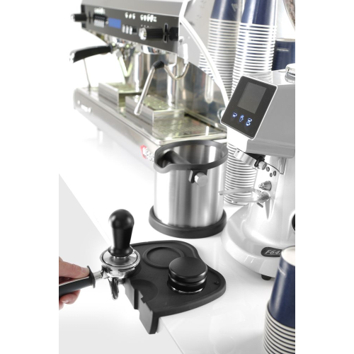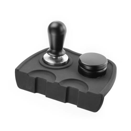 Gemaakt van siliconen, met uitsparing voor het plaatsen van 2 portafilters tijdens het aanstampen. Met twee sockets om tampers in te plaatsen.