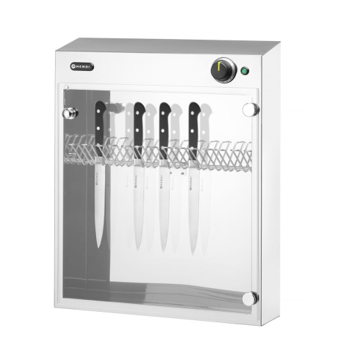 Perfect voor het steriliseren van messen, capaciteit 14 messen. Gemaakt van roestvast staal met plexiglas deur. Inclusief van roestvaststalen messen houder. Steriliseert door middel van bacteriedodend ultraviolet licht. Voorzien van micro-schakelaar om inschakeling met geopende deur te voorkomen. Ingebouwde timer instelbaar tot 60 minuten.