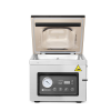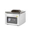 Behuizing gemaakt van roestvast staal. Kamer gemaakt van aluminiumlegering 5052. Donker transparante PMMA-deksel. Dankzij de bolle deksel en de holle bodem is er plaats voor grotere porties. De lekarme pakking garandeert een betrouwbare afdichting. Duidelijk digitaal display en manometer voor nauwkeurige vacuümregeling. Instelbare vacuümtijd: 5–90 sec. Instelbare sealtijd: 0,5–6 s. Sealstrip van 300 mm. Marineerfunctie met programmeerbare cycli (9–99 min). De automatische cyclus start wanneer het deksel gesloten is. Oliepomp voor snelle vacuümopbouw. Pomp capaciteit: 133,3 l/min. Geschikt voor zowel gladde zakken als zakken met reliëf.