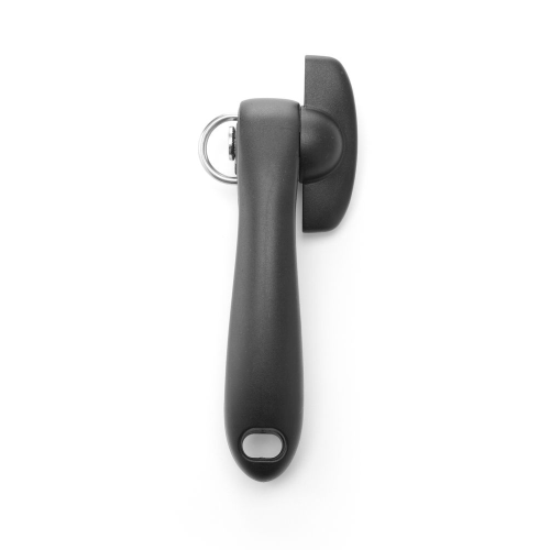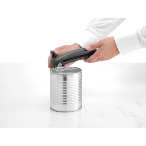 Deze veilige blikopener maakt geen scherpe randjes aan het deksel of blik en staat toe het deksel terug te plaatsen op het blik. Het mechanisme snijdt het blik open aan de zijkant net beneden het deksel.