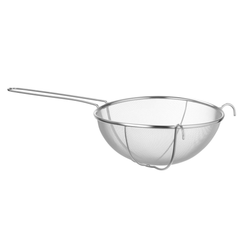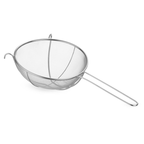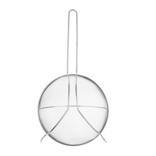 Gemaakt van roestvast staal. Zeer fijn gaas, versterkt. Met draadhandgreep. Uitgerust met extra ondersteunende haken voor een veilige plaatsing over een kom of pot. Vaatwasmachinebestendig.