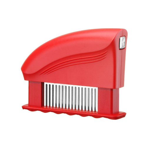 Moderne en effectieve manier van vleesverbetering en -vermalsing. roestvaststalen messen schuiven door wanneer de vermalser vlees raakt en perforeren de gehele dikte. Dankzij de vermalser is nog maar 25% van de tijd nodig voor marineren, vergeleken met traditionele methodes. Tijdens het bakken dringt een eventuele saus ook dieper in het vlees door. Zachte springveren, makkelijk te gebruiken met een goed resultaat.