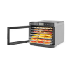 Voor het uitdrogen van fruit, groenten, kruiden, vlees, vis, enz. De automatische ventilator circuleert de warme lucht in de kamer, waardoor een gelijkmatige uitdroging wordt gegarandeerd zonder de roosters gedraaid hoeven te worden. De set bevat 7 roestvaststalen roosters van 305x330 mm, elk met een maximale belasting van 500 g. Roosters zijn gelijkmatig verdeeld in de kamer op 35 mm afstand, roosters zijn eenvoudig te verwijderen en te reinigen. Dubbelwandige polypropyleen behuizing verhoogt de thermische efficiëntie. Door de transparante deur kan het droogproces geobserveerd worden. Wordt geleverd met een transparant kruimel tray om te voorkomen dat kleinere vruchten vallen tijdens het drogingsproces – het kan ook op de bodem van de droogkamer worden geplaatst om resten op te vangen. Digitaal display. Temperatuurregeling: 35-70°C.Timer kan tot 24 uur worden ingesteld, met intervallen van 30 minuten.