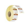 Ruimte voor het schrijven van de datum. Aantal stickers per rol: 1000. Elke dag van de week is gemarkeerd met een andere kleur. Label in 3 talen: Spaans, Portugees en Engels.