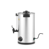 Ideaal voor glühwein en kokend water voor thee. Werkt automatisch en houdt dranken op temperatuur. Enkelwandige behuizing en deksel van geborsteld roestvast staal met veilig "Twist-lock"-systeem. Tegen kalk beschermd verwarmingselement onder de tank met oververhittingsbescherming. Uitgerust met cool-touch handgrepen, dekselgreep en anti-druppeltuit, allemaal gemaakt van polypropyleen. Duidelijke waterpeilindicator in liters. Maximale hoogte kopjes: 130 mm (zonder lekbak). Met een stroomschakelaar en indicatielampjes voor verwarming en waarschuwingen. De temperatuur kan worden ingesteld van 30° tot 100°C. Niet geschikt voor chocolademelk.