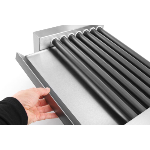 Roestvast stalen behuizing. Snelle (her)verhitting. Anti-aanbaklaag op de rollers. Verwijderbare vetopvanglade. De rollers hebben een bruikbare breedte van 42 cm. Temperatuur instelbaar tot 150°C.