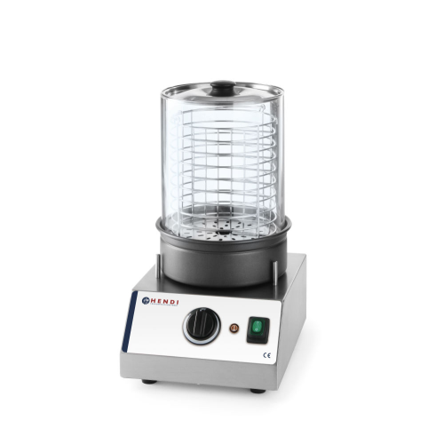Verwarmt hotdog worstjes en houdt ze warm. Roestvast stalen behuizing, worstenhouder gemaakt van geanodiseerd aluminium en glas. Met regelbaar vermogen.