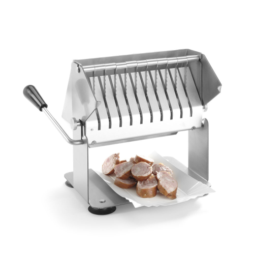 Stabiele voet door zuignappen. Hoogwaardige gekarteld geslepen messen. Eenvoudig te reinigen. Snijdt 11 plakken.